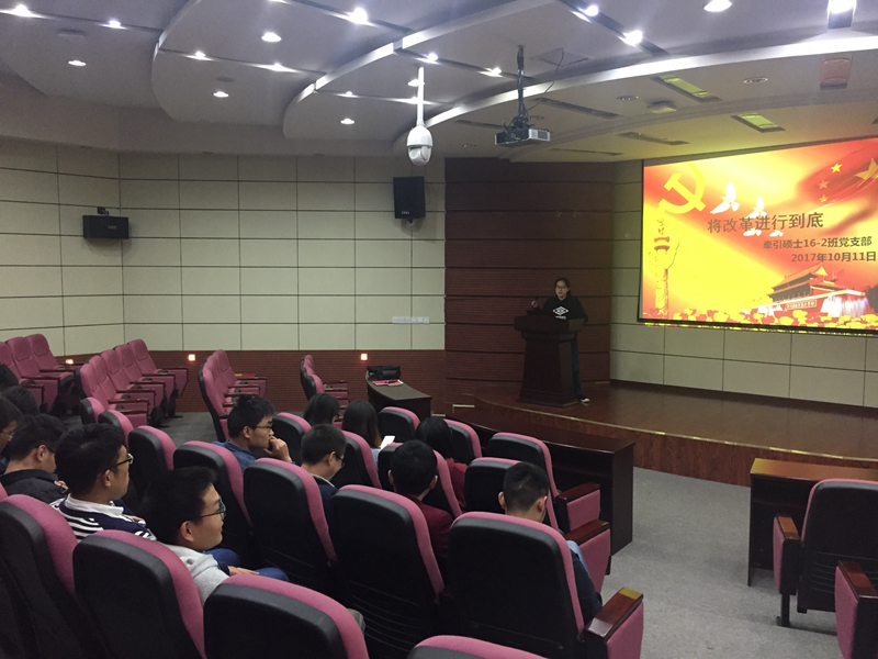 10月11日,牵引硕士16级2班党支部在红楼218组织学习《将改革进行到底》,本次学习的主讲人是张梦乡同学,参与学习的为16-2班党支部全体成员。