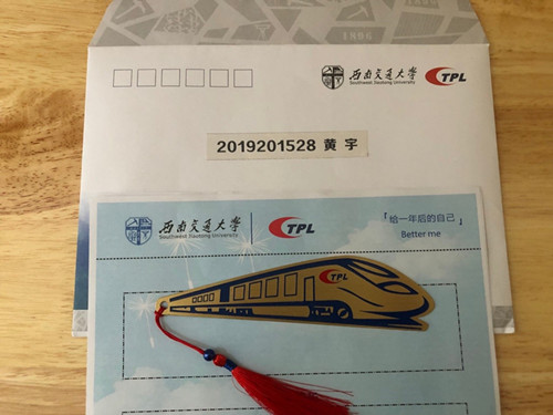 党委副书记李莹老师、学工组副组长余卉老师、2019级研究生辅导员郭鑫鑫老师和2018级硕士辅导员魏远廷老师的指导和带领下,牵引研会的学生干部们全身心的投入到迎新工作中。本次迎新工作在氛围营造上融入了迎新生及庆祝中华人民共和国成立70周年的元素。牵引学工组的老师们也精心为新同学准备了一份体现牵引特色及人文关怀的新生入学礼物。新生入学礼物包含定制的动车形状的铜质书签一枚及时光漂流瓶信纸一页,每个书签上都特别印制了同学们的姓名和学号,时光漂流瓶信纸用于鼓励新生在入学初思考自己在研究生期间的学习、科研、个人成长等各个方面的目标。
