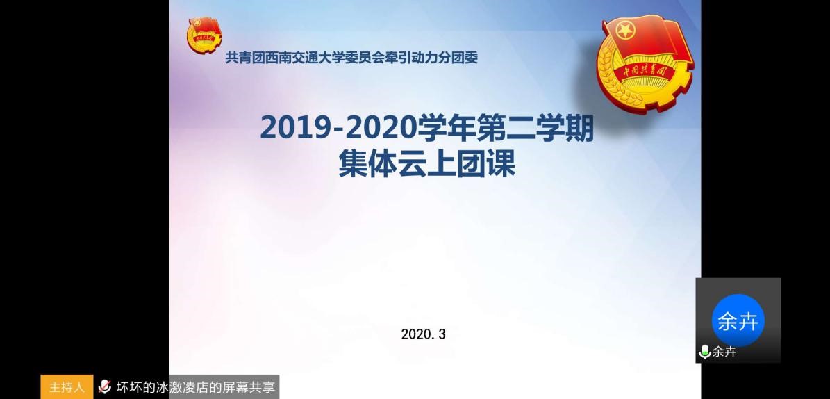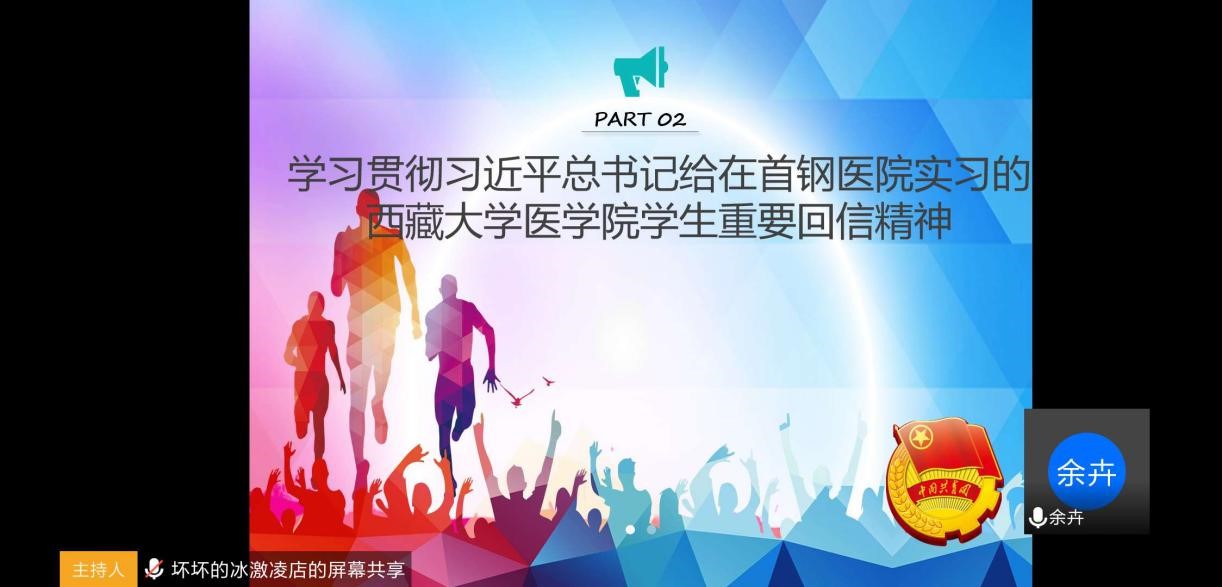 研究生之窗讯(通讯员 高程程 摄影报道)为响应校团委每学期一次团课培训要求和研究生院关于认真贯彻落实《中共教育部党组关于学习贯彻习近平总书记给在首钢医院实习的西藏大学医学院学生重要回信精神的通知》工作要求,在疫情期间不放松对团干部的培养,2020年3月18日,2019-2020学年第二学期集体团课以网上团课的方式顺利开展。本次团课由团委书记余卉老师主持,主要内容是:学习贯彻习近平总书记给在首钢医院实习的西藏大学医学院学生重要回信精神,av影片直播