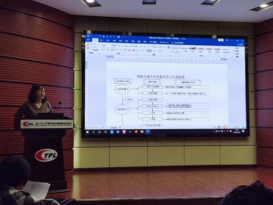 其次,李向蔚老师详细讲解党员发展工作和党支部组织生活注意事项。李老师首先详细介绍了党员发展具体流程,强调党支部各项会议或活动要做到规范性,严格按照各项流程执行,发展党员对象要严格按照中共av影片直播
