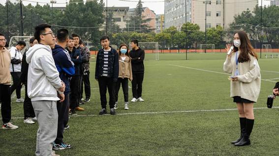 接下来的“心理健康猜猜看”游戏,考验了各组同学间的团队默契程度。比划的同学手脚并用、各显神通;而负责猜词的同学绞尽脑汁、不断尝试,现场的气氛欢乐既紧张。最终,第一组的同学心有灵犀,猜词又快又准,拿下了这个游戏的胜利。由于本轮采用“惩罚”制模式,总分最低的第五组只好派出组内的实力唱将——唐同学,现场演唱了一首《当爱已成往事》。他深情的歌声融进和煦的春风,赢得大家的阵阵掌声。