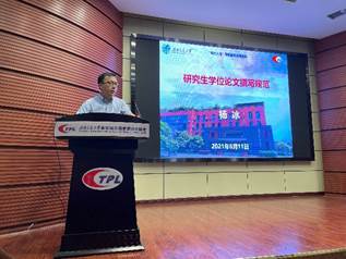 杨冰老师从“什么是学位论文、学位论文的质量、撰写中的共性问题、几点举措和建议”等方面对学位论文的总体要求进行介绍,并结合学位论文的中英文扉页、中英文摘要、图表引用、变量说明、正文中的参考文献引用、参考文献格式、致谢、参加的科研项目等方面深入具体的指出学位论文撰写的共性问题,并介绍了正确的书写规范。在场同学认真听取杨老师的介绍,并用热烈的掌声向杨老师表示衷心的感谢。