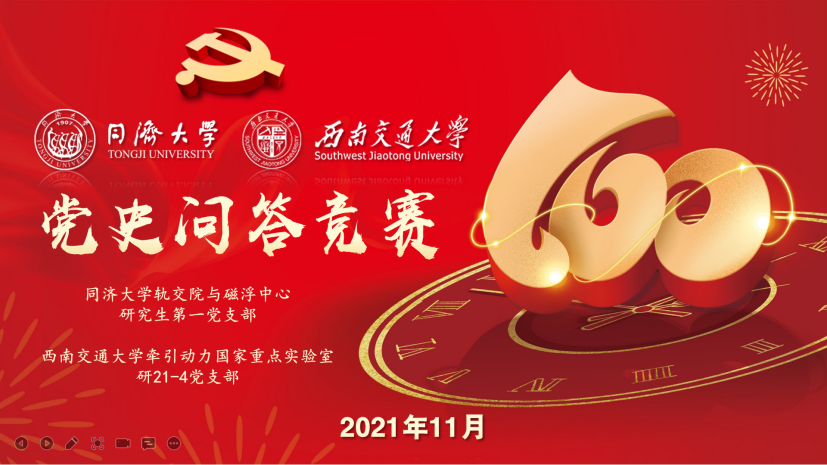 11月26日,两个支部共同开展党史知识竞答依托共产党员网、党史学习教育网站的短视频资源:党史故事微视频100讲等,以师生喜闻乐见的形式,分别提出建党、大革命、土地革命、抗战、解放战争、建国、改革开放等7个方面,30余个抢答题。推出了竞答+微视频的学习方式,以党的发展历程为顺序,以党的重大事件为线索,以不同时期的典型事例、历史人物、精彩故事为主干,全景式回顾党的伟大历程和辉煌成就。双方成员在线上会议室进行抢答,成功答对得分后,共同观看题目背后的党史故事,以一人答题,全体学习的方式,带动大家积极参与。