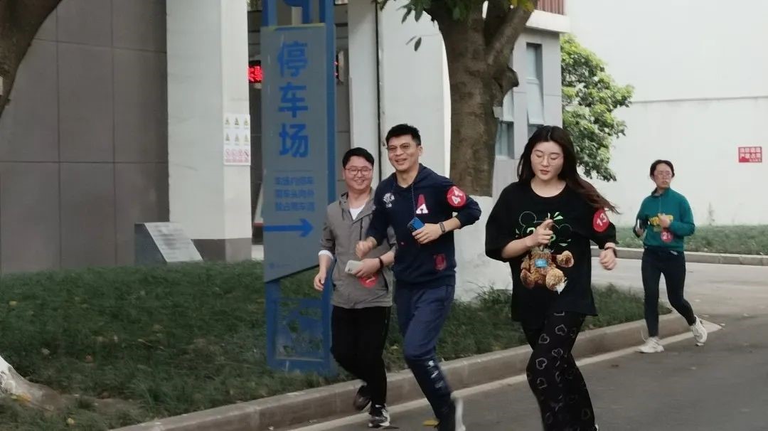 跑步过程中,每位同学都根据自身情况调整节奏并完成比赛。有酷爱运动的同学一骑绝尘、领跑比赛;有课业繁重,缺少锻炼机会的同学超越自己,克服身体疲惫跑完全程;还有同学漫步于春风中享受当下,趁机游览许多过去尚未涉足的校园美景。起点和终点的游戏环节,同学们在答题过程中偶尔互相对望,想出答案的同学则会心一笑,现场一片欢声笑语~