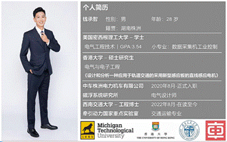 钱承智师兄本科毕业于美国密西根理工大学,大学期间学习电气工程技术,同时辅修了小专业数据采集机工业控制。研究生就读于香港大学,攻读电气与电子工程,毕业后就职于中车株洲电力机车有限公司磁浮系统研究所。2022年8月至今,于av影片直播