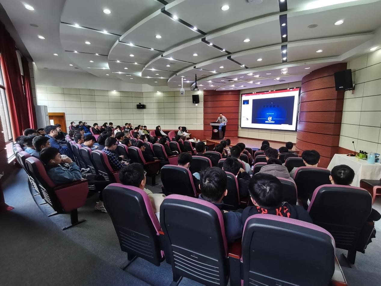 然后,航空工业成都飞机工业(集团)有限责任公司李牧皛师兄结合自己基层国防单位就业经历,从五个方面进行了分享。第一部分是个人简历的制作,他表示最重要的是突出自己的特长特点,写出自己的特色。第二部分,李师兄介绍了自己的工作,并告诫大家在寻找工作或在工作时,不要怕跨行工作。第三部分,强调要注意工作以后发生的身份转变,其中主要是时间观念、工作内容、价值实现、思维方式。提醒大家要及时调整自身定位,转变身份。第四部分,告诉大家要探索自身,抓住重要的第一年,及时适应和熟悉工作,用好“传帮带”,虚心向前辈请教工作经验,要坚持终身学习,保持自己的技能不能丢,要坚持守正创新,提升自己的能力。最后,李师兄忠告大家要保持乐观的心态,严谨的态度,要对自身的工作和生活做好科学的规划,培养自己持续的兴趣爱好。