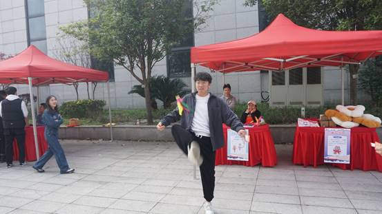 踢毽子是大多数同学童年最喜爱的运动之一,在“越踢越开心”游戏中,同学们通过毽子回味童年乐趣,回忆儿时初心,感受当下生活,逐渐将活动的气氛推向高潮。