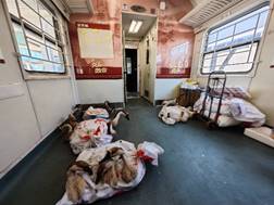 在列车员的带领下,同学们参观了“慢车牧歌车厢”。该车是用于安置牛羊猪等大型牲畜的行李车厢,和普通行李车厢不同的是此列车厢加装了家禽拴挂处和排泄废物用的凹槽。谈及这辆列车,列车员说:“国家花了大价钱改造了车辆,这对车年年亏损,国家也是贴钱让这对车保持运行,只要这里的人民需要,这对车就不会消失。”