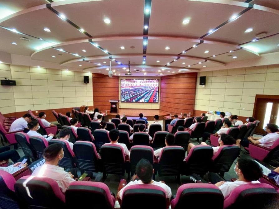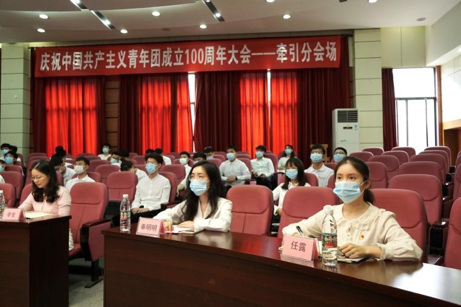 党委书记庞烈鑫、党委副书记李莹,辅导员任露、奉明明,青年教师代表陈再刚、马光同、敬霖与学生党员代表、专兼职团干部、团员青年代表一同在红楼218小礼堂集体收看了直播盛况,认真聆听了习近平总书记的重要讲话,回顾了团的百年青春历程,反响热烈。