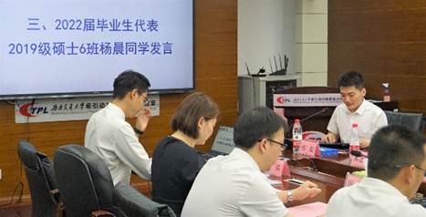 党委书记庞烈鑫,主任王开云,党委副书记李莹,副主任杨冰,副主任敬霖、副主任陈再刚,团委书记、学生工作组副组长余卉,导师代表吴圣川、马卫华、肖新标、郑珺、黄志辉、姚远,2022届硕士毕业生辅导员田容博及2022届毕业生代表22人出席本次活动。会议由余卉老师主持。