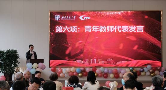 青年教师代表何庆烈为荣休教师送上祝福,并庄严承诺,青年教师必将秉承老前辈鞠躬尽瘁的宝贵精神,脚踏实地、守正创新,继续扎根科研一线,为av影片直播