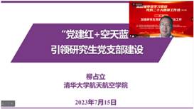 清华大学航天航空学院研究生工作组组长柳占立以“‘党建红+空天蓝’引领研究生党支部建设”为主题,介绍了清华大学航天航空学院通过在学生思想领航方面突出“党建红”,在专业特色结合方面强调“天空蓝”的做法。该院航博181党支部在支部建设方面采取了包括行走的思政课堂、联学共建、进步固本、抓骨干等具体措施,取得了第二批全国高校百个研究生样板党支部创建项目等多项荣誉。华中农业大学理学院党委副书记祝鑫进行点评,她表示清华航博支部以党建红为的鲜亮底色,以空天蓝为学术特色,走出了研究生党建工作的新路径和新特色。