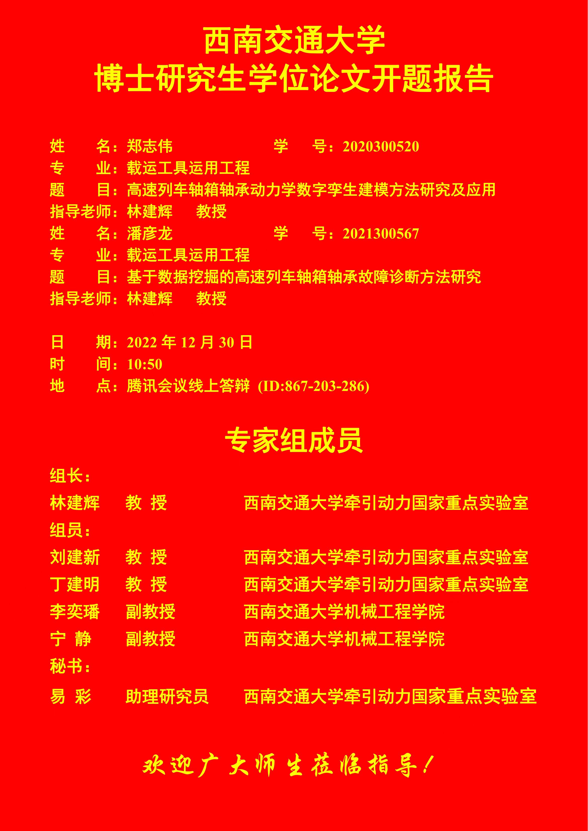 av影片直播 郑志伟、潘彦龙博士研究生学位论文开题报告