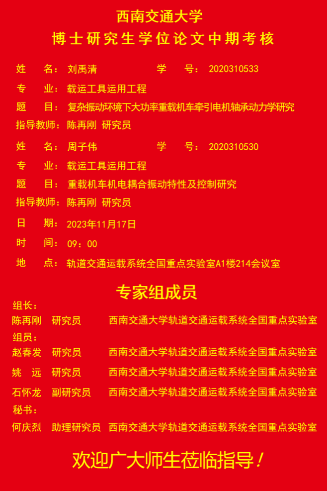 av影片直播 刘禹清、周子伟博士研究生学位论文中期考核