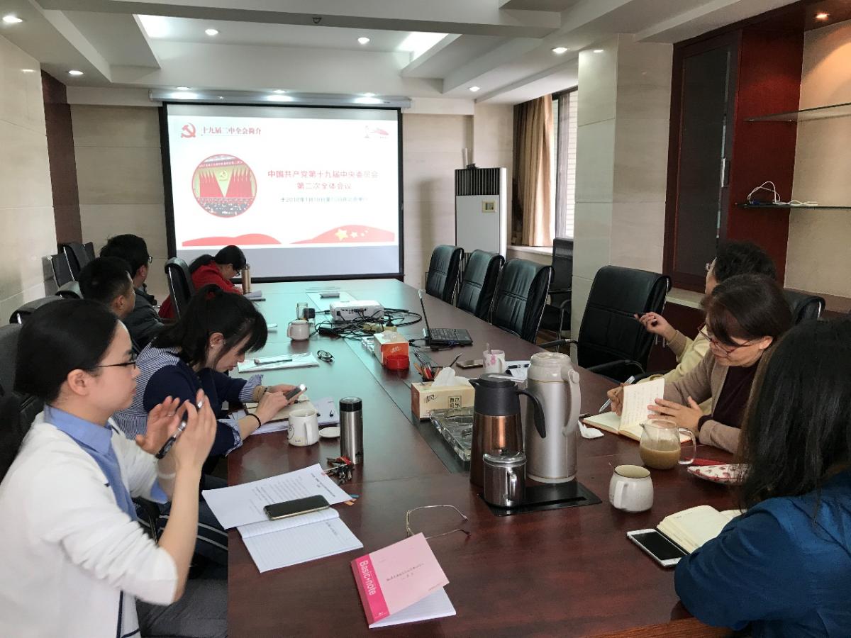 九里校区1号综合楼第一会议室召开会议,学习十九届二中、三中全会精神。