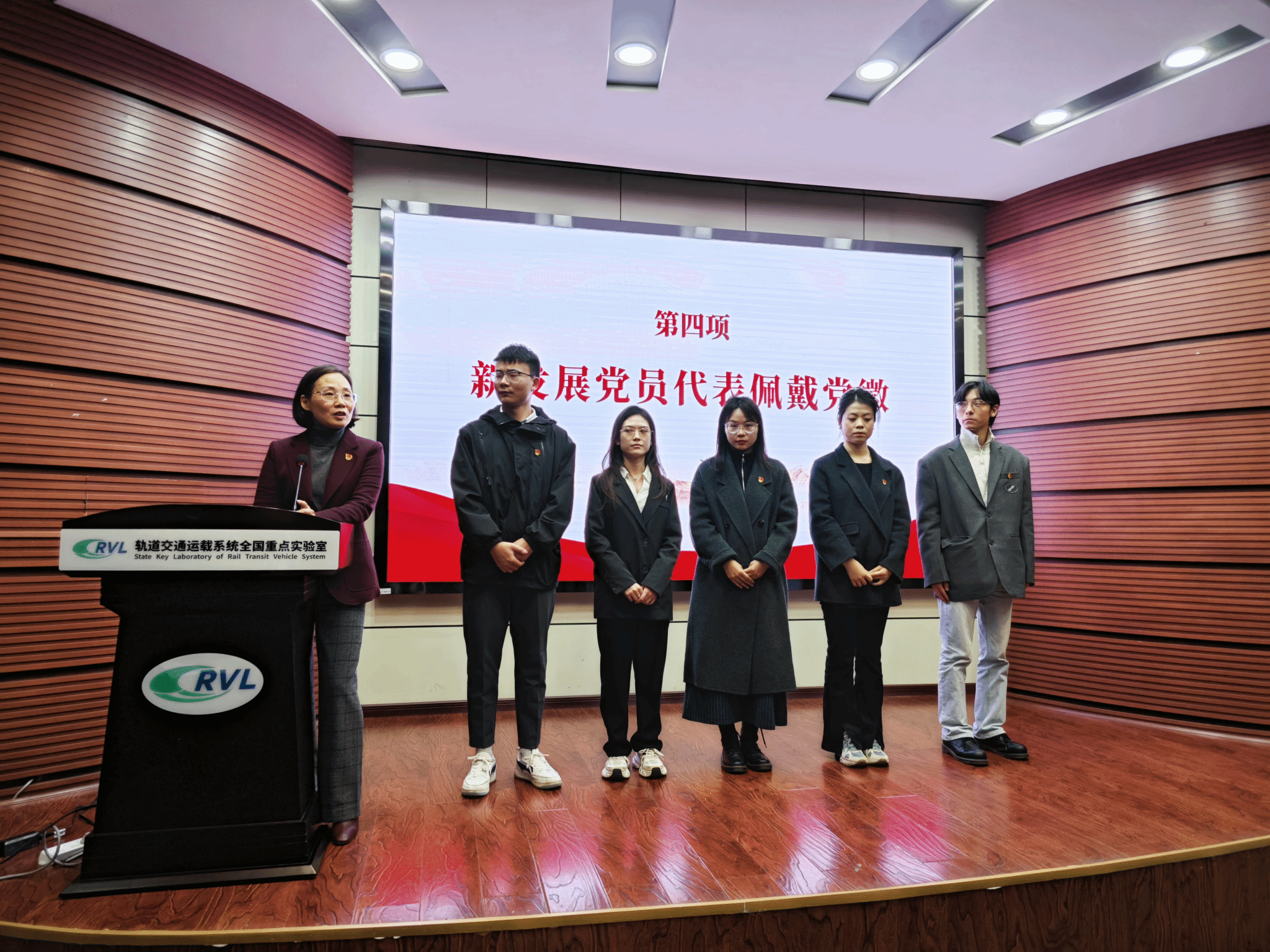 党委副书记王霞主持,学生党支部委员代表、2024年第一期新发展党员及列线所2024级硕士党支部全体党员参加。