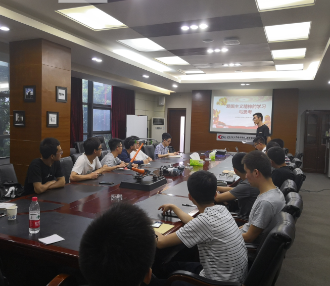 首先,陈超朋针对当前社会热点问题如中美贸易战和任正非公开讲话,引出今日论题:作为研究生应如何爱国。对于这一论题,他从五个方面进行讲解:为什么要学习爱国主义精神,爱国主义精神解读,爱国主义思想的历史考察,新时期的爱国主义思想解读,及争当爱国主义的践行者。他指出,爱国具体是指爱社会主义国家,是每个公民的职责,马克思,毛泽东,邓小平等伟人们对爱国给出了大量的解释,它起源于夏朝,近现代这一时期爱国主义这一概念才明确提出,然后在不断发展中升华为了新时代下的爱国主义,作为当代党员,应以爱国主义的热情驱动改革创新,投身党的“四个伟大”。