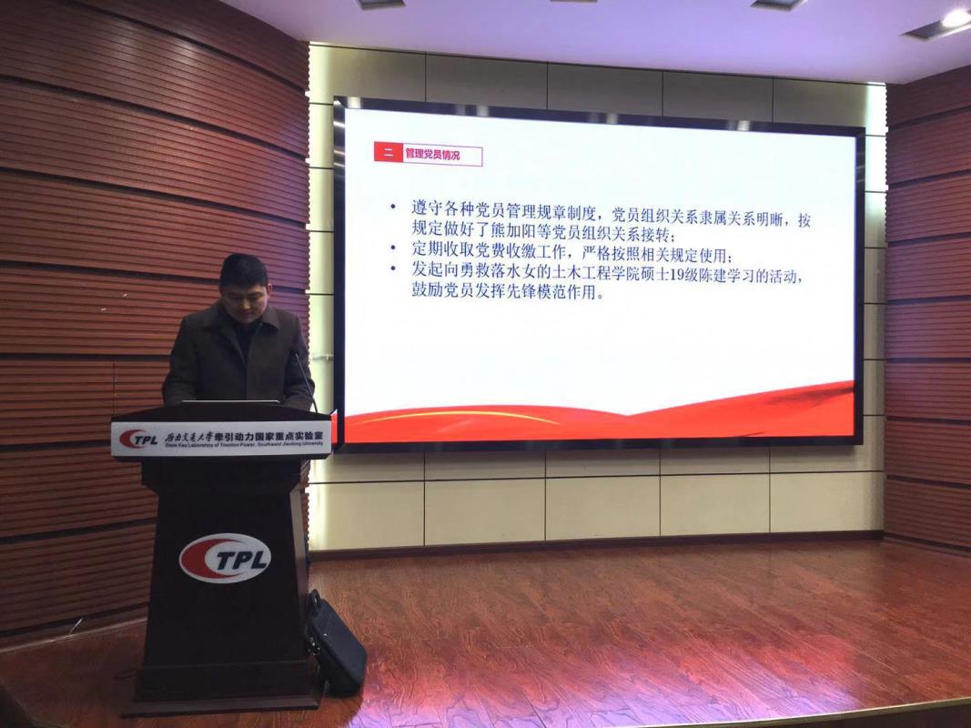 本次教工党支部述职考核围绕八个方面进行,具体包括:党员教育情况、管理党员情况、监督党员情况、组织师生情况、宣传师生情况、凝聚师生情况、服务师生情况以及推动改革发展到位情况等。车辆工程与振动噪声研究所党支部、机车与车辆工程研究所党支部、列车与线路研究所党支部、新型轨道交通技术研究所师生共建党支部、试验研究部党支部、轨道交通国家av影片直播