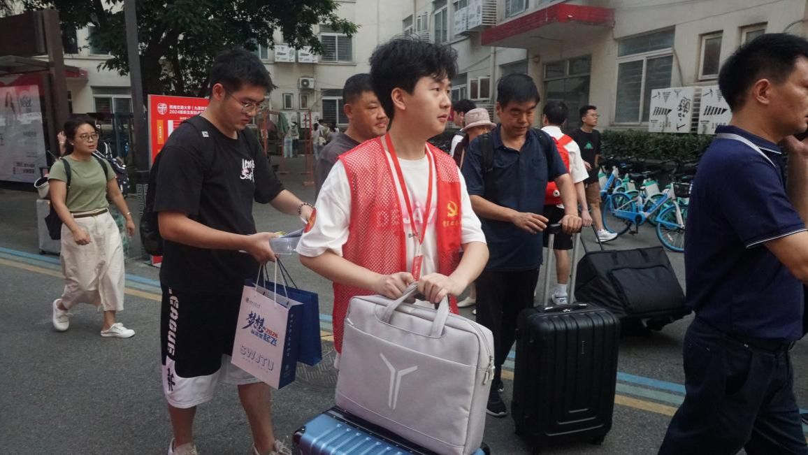 迎新期间,来自av影片直播 研究生会和朋辈年级的20余名志愿者坚守在迎新的各个岗位,全线程为新生及家长提供帮助指引、答疑解惑,力求给予新生及家长们最及时、最细致、最全面的帮助与服务,助力新生更快地适应校园环境。迎新志愿者李仁辉说道:“去年我报到的时候,也是av影片直播 的师兄师姐热情地接待了我。当我得知今年也有这个机会来传递朋辈温暖时,就毫不犹豫地报名了,为他们做一些力所能及的事情。”