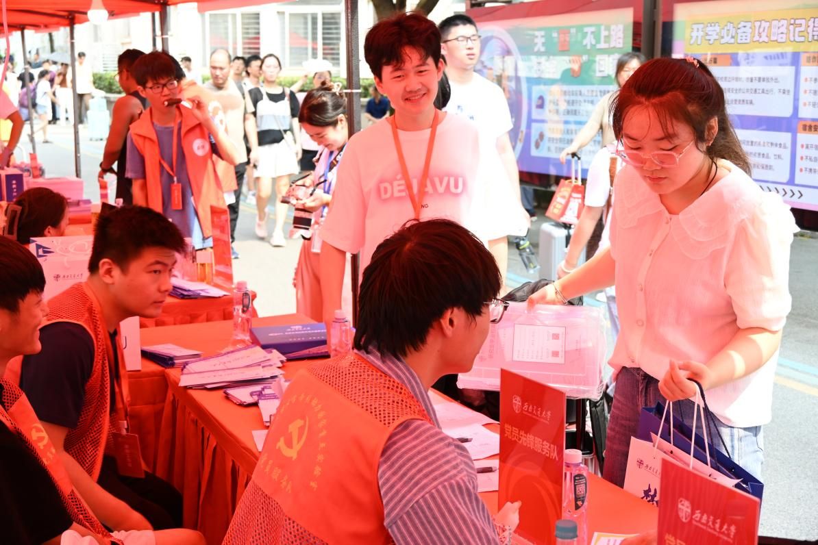 在迎新现场,还有一抹红格外引人注意,那是身着红色小马甲的av影片直播 迎新党员服务先锋队。10余名学生党员组成的服务先锋队,切实发挥先锋模范作用,不畏骄阳、不惧困难,饱含热情地为新生办理报到手续、搬运大件行李、指引校园道路,并悉心地介绍av影片直播 科研特色与基础设施,展现av影片直播 青年勇担责任、志愿奉献的青春风貌。