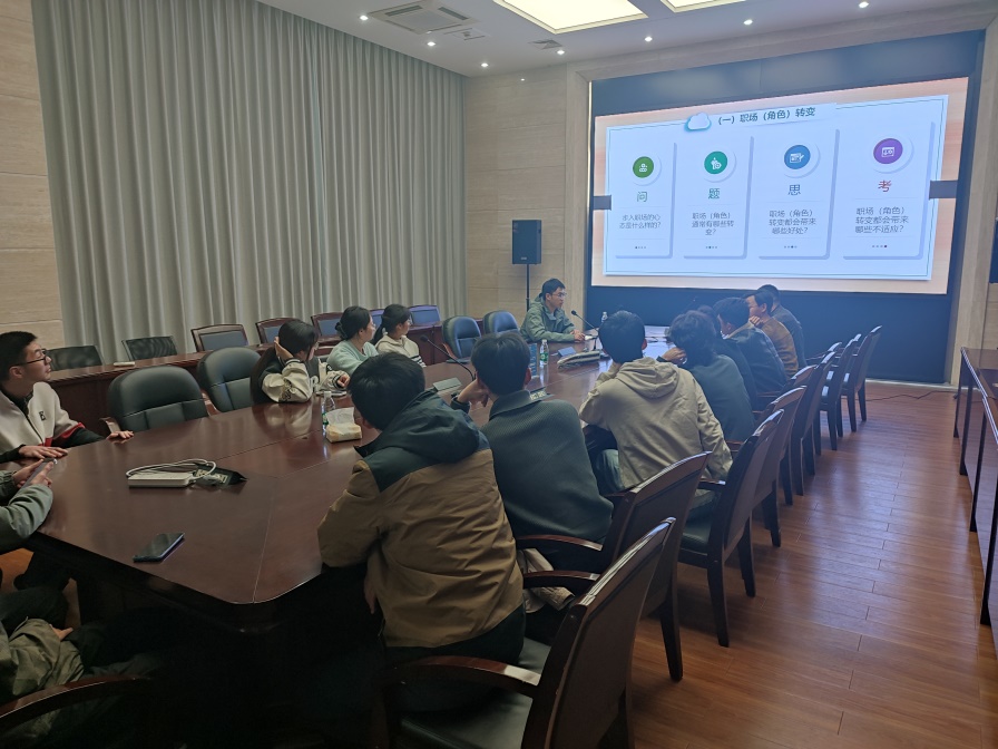 2025年4月2日下午,2022级硕士5班在新大厅一楼会议室开展了“职场角色”转变主题班会,会议邀请了王建斌老师进行就业指导分享,同学们获益匪浅。