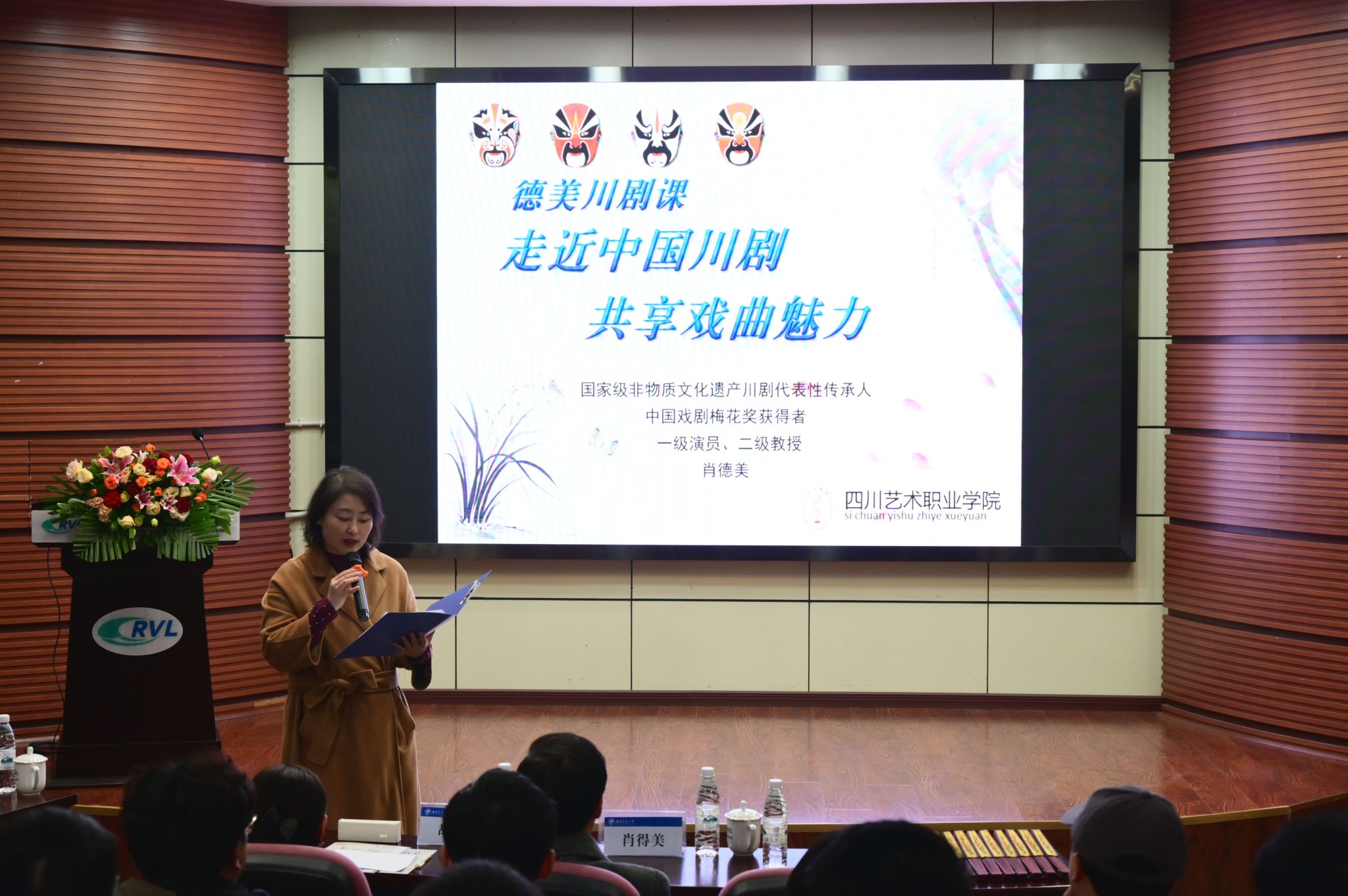联合人文学院在A1楼218会议室共同举办“博雅动车”融通共育美育系列活动之川剧体验专场。活动特邀国家级非物质文化遗产川剧代表性传承人、梅花奖获得者、一级演员肖得美教授担任主讲嘉宾,人文学院副院长胡红,av影片直播