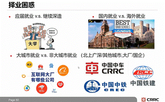 钱师兄以自己求学和求职、工作流程为整体线索分享了研究生学习以及就业的相关经验,讲解了研究生生涯如何“奔赴”未来就业,如何适应从学生到“社会人”地转变以及中车株机最新招聘信息和有关择业的真诚建议。钱师兄首先从自己求学经历和现阶段工作重点启示大家思考自身的求职动因进行职业规划。