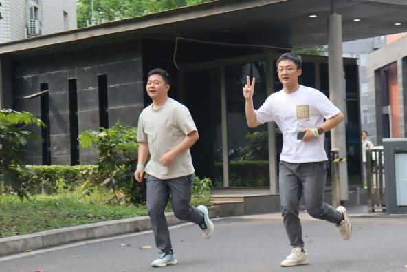 参与环校跑活动师生们,有的你追我赶,劲头勇猛势必争夺第一;有的互相加油打劲,一路上欢声笑语;还有的快步健步,戴着运动耳机感受音乐律动。大家或在奋力奔跑中感受运动魅力,或在漫步校园中尽享旭日春光。