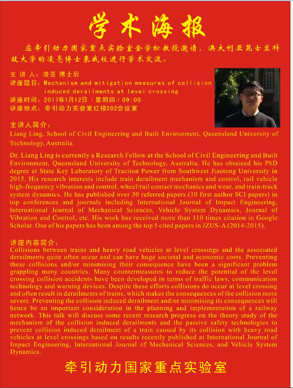 【学术讲座】Mechanism and mitigation measures of collision induced derailments at level crossing