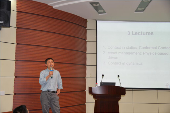进行了第一次讲座,讲座内容分为了三个部分,首先李老师介绍了静力学接触,即共形接触,分别从共形接触存在的问题,解决的方案,实际的应用及展望四个方面进行讲解,然后李老师从宏观的角度,通过多个现实例子介绍了关于铁路行业的资产管理问题。最后介绍了动力学接触相关的问题。李老师图文并茂的表达,使得学生们能够更加容易的理解到这些知识,期间李老师不时的提问学生,使得整个教室充满了活力。并且李老师留了一部分时间给学生们解惑,大家都踊跃的举手提问,场面很是热闹!