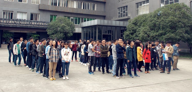 在工作人员的带领下,同学们参观了实验室大厅。厅内陈放着众多强大的试验手段和试验设备:包括处于世界领先水平的机车车辆整车滚动振动试验台、高温超导列车环形线路、弓网系统动力学性能模拟试验台、高速轮轨摩擦磨损试验台,车体疲劳试验台、轮轴疲劳试验台等一系列试验平台。同学们边参观边提问,讲解员耐心地解释试验平台的基本功能、运作条件以及科研现状等情况。