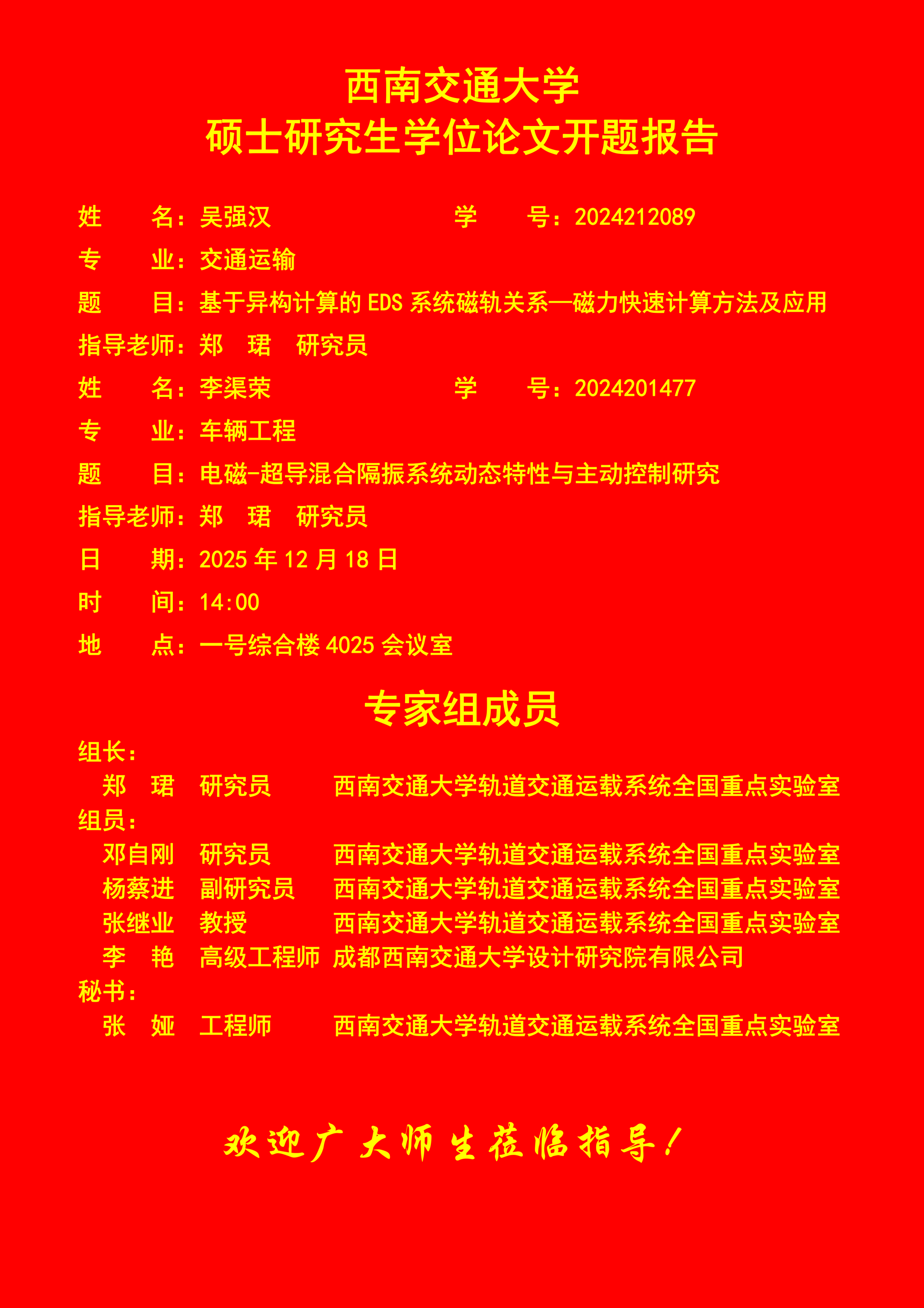 av影片直播 吴强汉、李渠荣硕士研究生开题报告