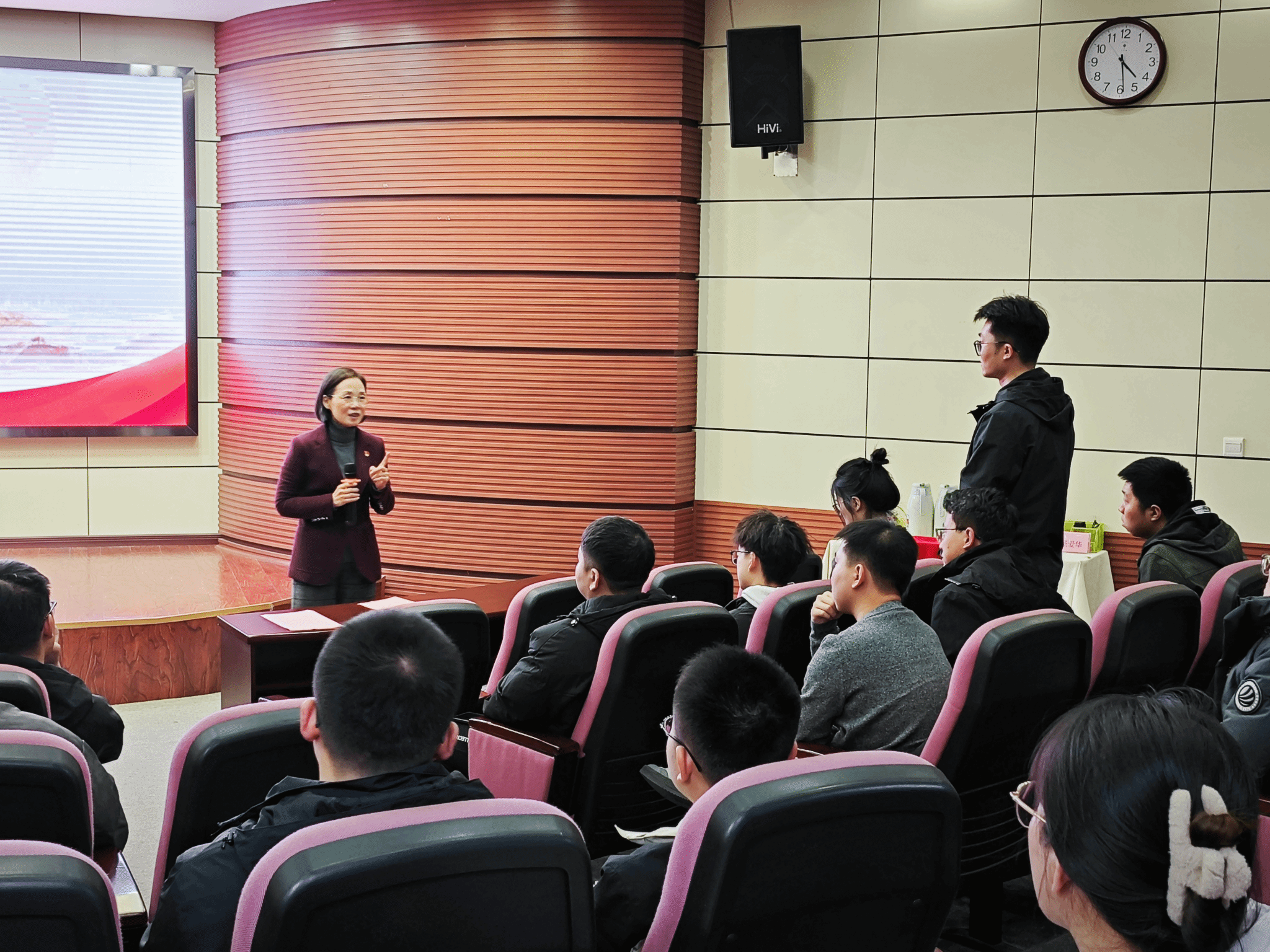 在主题党课中,杨书记以“情怀”“格局”“本领”“态度”“人文素养”“智慧”“身心健康”七个关键词为主线,以生动的事例,深入浅出明辨道理,教育引导全体学生党员厚植家国情怀、坚定理想信念、提升党性修养、增强服务本领,提升个人修养。同时,她结合学生支部工作实际,向现场支部委员提出三点建议:一是不断创新党支部理论学习的形式载体,提升学习质效。二是积极开展爱国主义教育主题党日活动,尤其注重引导青年党员在对中华优秀传统文化的深刻体悟中,增进对伟大祖国、对中华优秀传统文化的认同,厚植爱国主义信仰;要注重发挥青年党员先锋模范作用,带领av影片直播