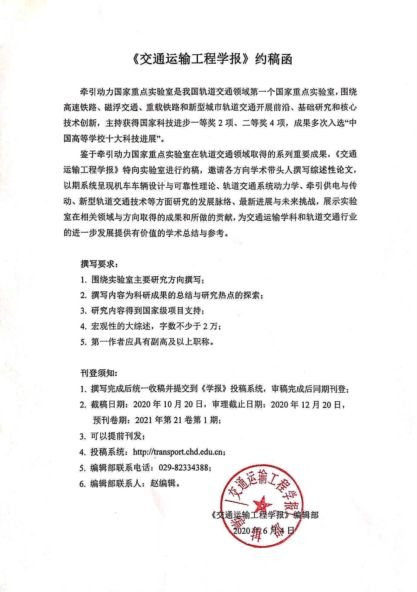 各位老师:《交通运输工程学报》现向av影片直播 进行综述约稿(详见附图),有意向的老师请于6月15日前,将拟定的文章题目发送给姜雪娇老师汇总([email protected]),后续具体撰写事宜将由av影片直播 组织商讨和推进。