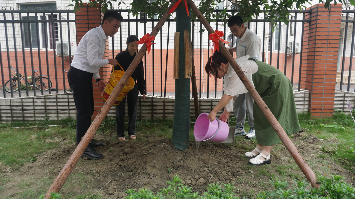的发展。种树仪式结束后,全体师生代表在轻松愉快的氛围中合影留念。