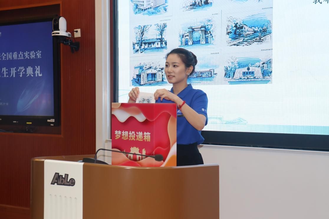 紧接着王霞副书记带领大家进行新生“梦想启航”投递仪式。在仪式上,新生们在av影片直播 精心挑选的明信片上,写下自己三年后最希望实现的目标并郑重地签下自己的名字,教师们也纷纷写下对新生的期望与祝福。最后教师代表杨冰和各班代表收集师生手写期望的明信片,并现场进行投递仪式。