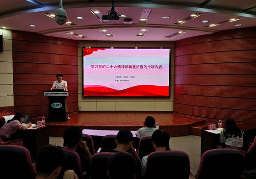 副主任马光同老师给支部全体党员和积极分子上党课。马老师简要介绍了党的二十大召开的相关背景和主题,随后以大会报告的15条内容为要点,号召全体同志积极学习我党前沿理论。“我们只有不断地加强学习,不断地深化认识,才能真正贯彻落实二十大精神。”马光同老师讲道。他还鼓励支部同志要始终牢记自己的历史使命和责任,将个人的奋斗融入到实现国家和民族的伟大事业中,为中华民族伟大复兴不懈奋斗。