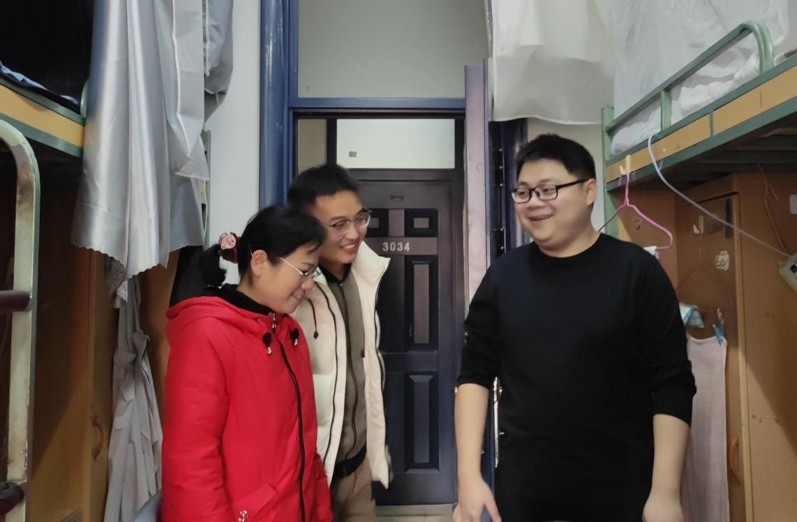 党委副书记王霞及辅导员陈宇豪一行走访慰问留校学生,在甲辰龙年春节到来之际为春节留校学生送去新春祝福。
