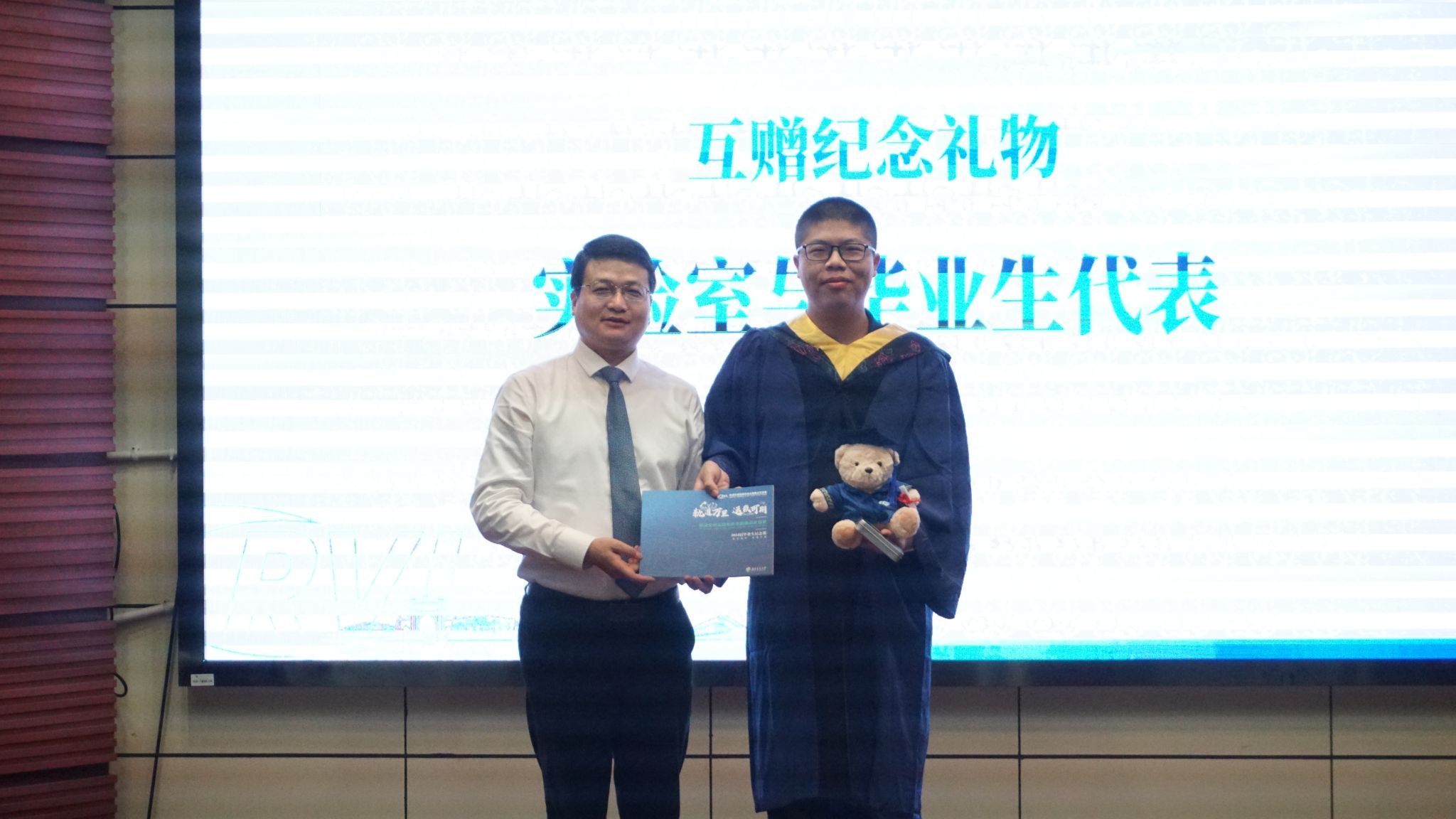 在师生互赠礼物环节,庞烈鑫书记与毕业生代表陶磊毅上台进行了礼物互赠。今年2024届全体毕业生自发组织起来,向av影片直播