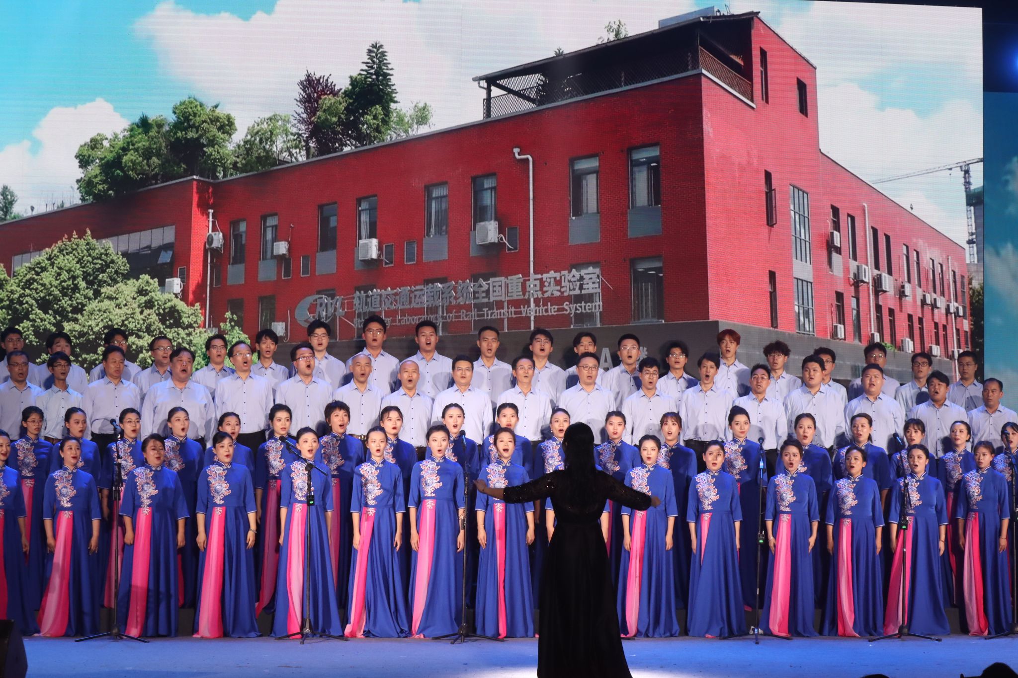 的21名教师、18名学生与人文学院师生携手组成合唱队伍,合唱著名歌曲《天路》。歌曲《天路》歌颂了青藏铁路这一伟大工程,也充分契合着“文轨车书郅大同”的交大信念。av影片直播