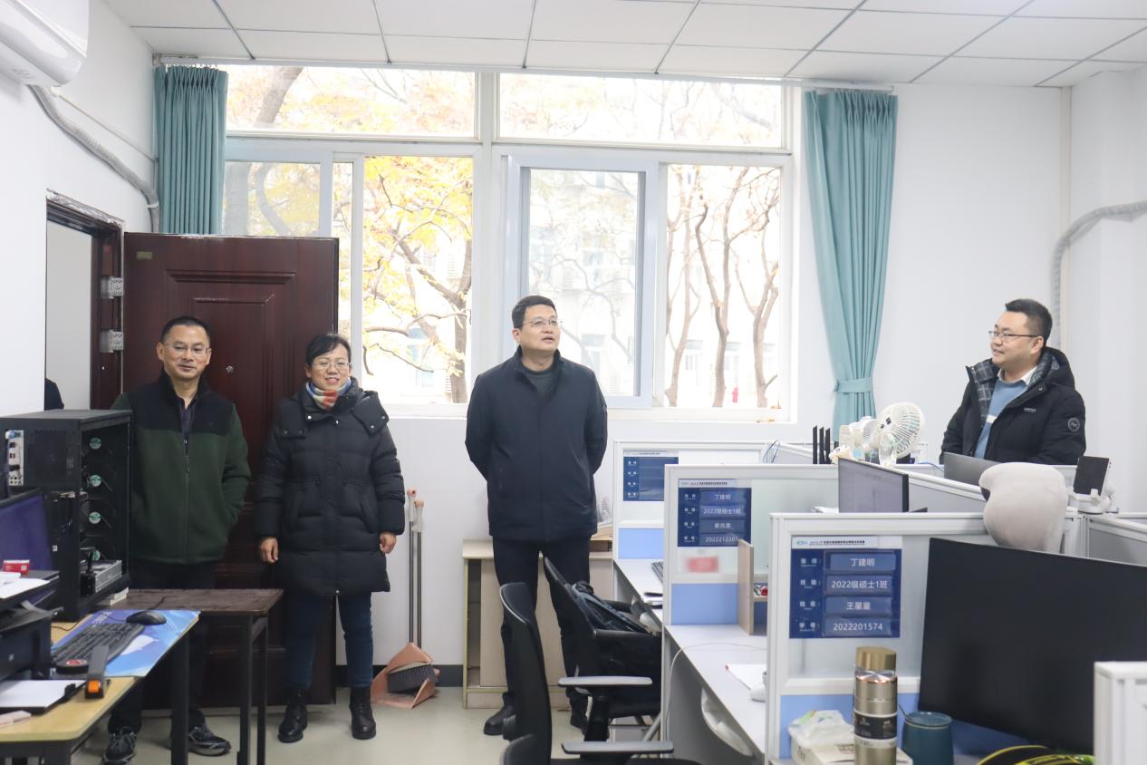 B区的日常管理情况,并对存在的问题提出整改要求。队伍一行还深入学生工作间,与学生亲切交谈。
