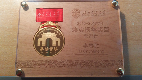 牵引动力国家重点av影片直播 博士研究生李春胜同学在今年av影片直播 学生最高荣誉——“竢实扬华”奖章评选中脱颖而出,获此殊荣。
