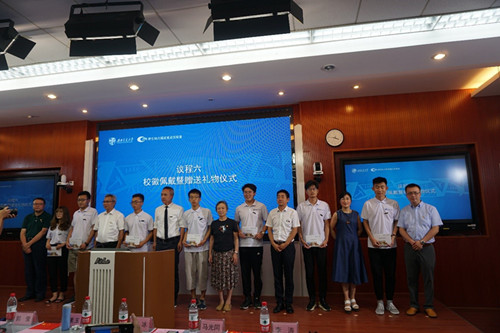 党政班子成员、导师代表、班主任代表等为2019级新生代表佩戴了校徽,并赠送刻有同学们姓名学号的高铁书签和承载着自己未来梦想的一封信给各位新生。同学们纷纷表示收到这份非常有意义的礼物非常开心。