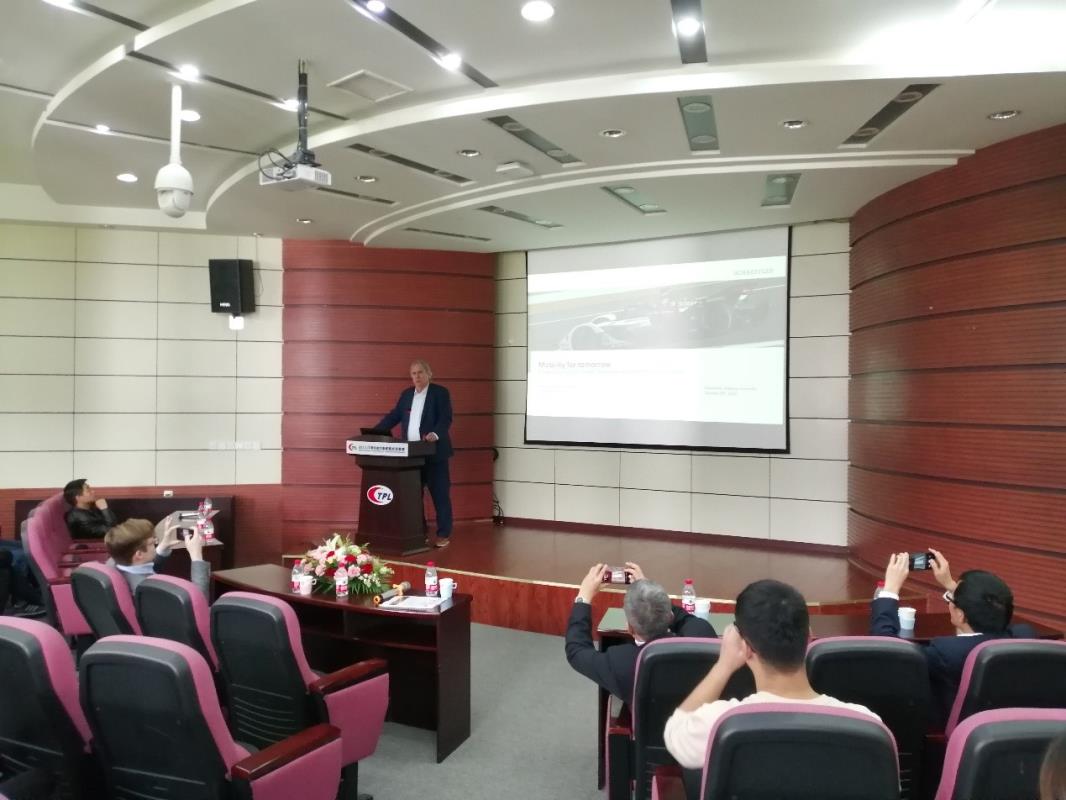 师生作了题为“驱动未来—轨道交通在城市、城际和洲际交通中的应用”的讲座。