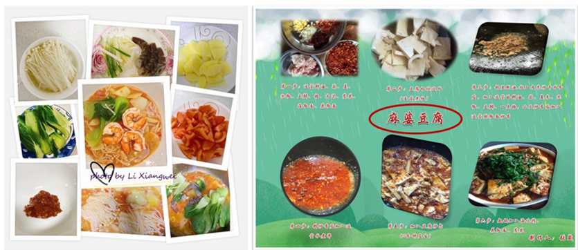 离家较远,平时上班不是吃食堂,就是父母在家做饭,即便偶尔自己做,做得也很粗糙。”张崴老师如是说。家里小孩平时爱吃经典川菜麻婆豆腐,自己在家做过几次,可孩子总是说不如饭店的味道好。这次厨艺比拼,张崴老师专攻麻婆豆腐,在网上搜索了制作流程,步步求精,终于做出了可口的味道。她说:“宅在家中和家人做饭,是平时忙碌生活里阖家少有的快乐”。