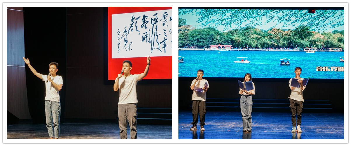 青年学子现场朗诵了诗词《七律•长征》,热情赞扬了中国工农红军不畏艰难险阻的英雄气概;小合唱《唱支山歌给党听》《让我们荡起双桨》表达了对中国共产党、对新中国的赞美和歌颂。