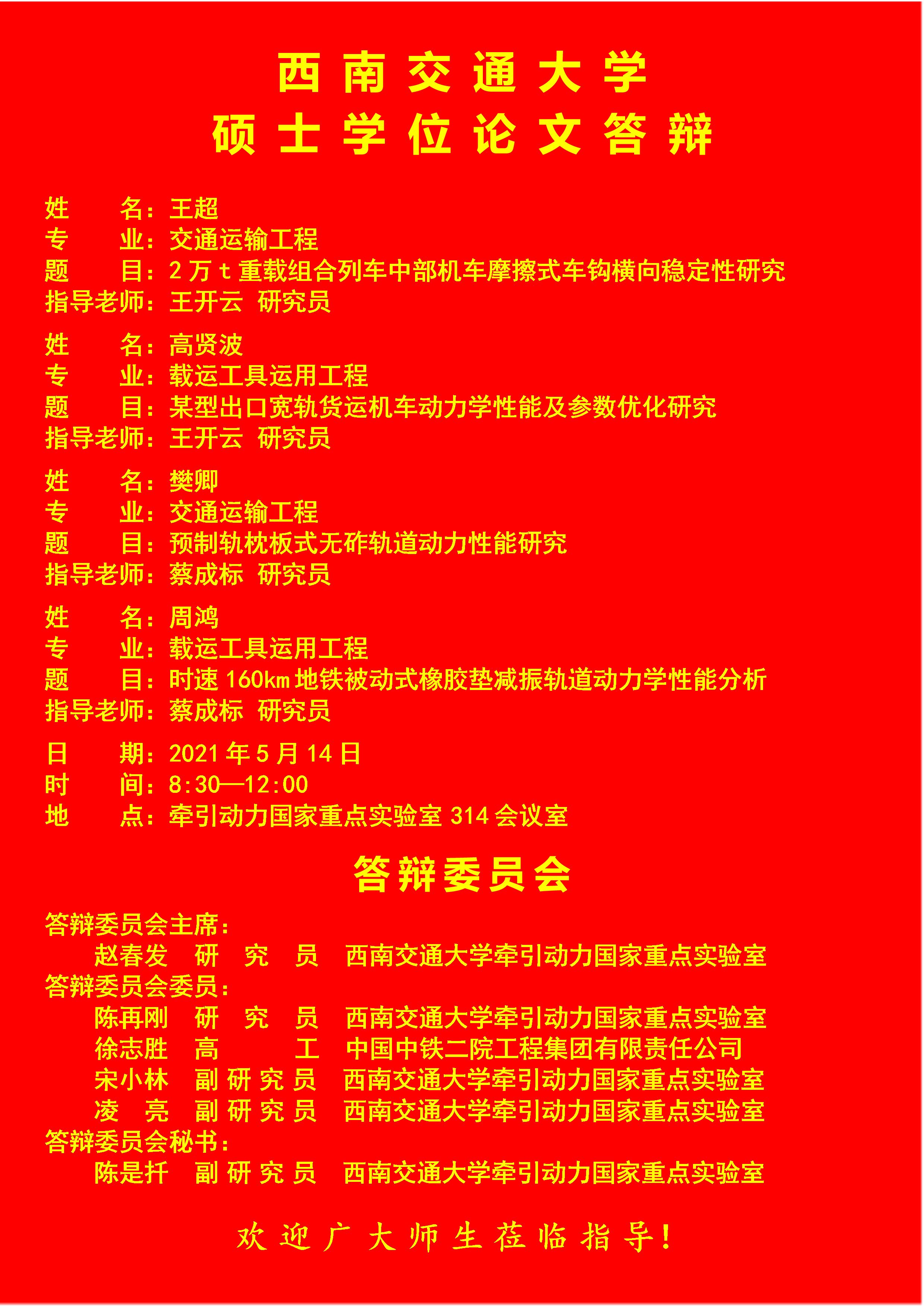 来源: 发布者:牵引动力研究生教育办公室 日期:2021/05/13 12:46:32 点击数: